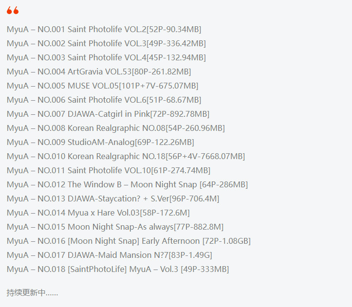 MyuA合集目录表如下图: